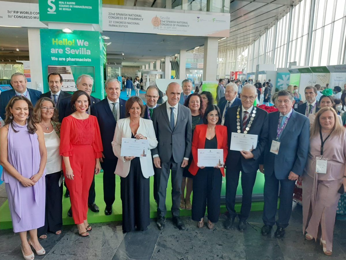 Así, nuestro presidente hizo entrega de unos diplomas a las principales autoridades participantes en la inauguración: la ministra de Sanidad, Carolina Darias; la consejera de Salud y Consumo, Catalina García; el alcalde de Sevilla, Antonio Muñoz; y Dominique Jordan, presidente de la FIP, justo antes de acceder al auditorio, donde tuvo lugar el acto oficial de inauguración.