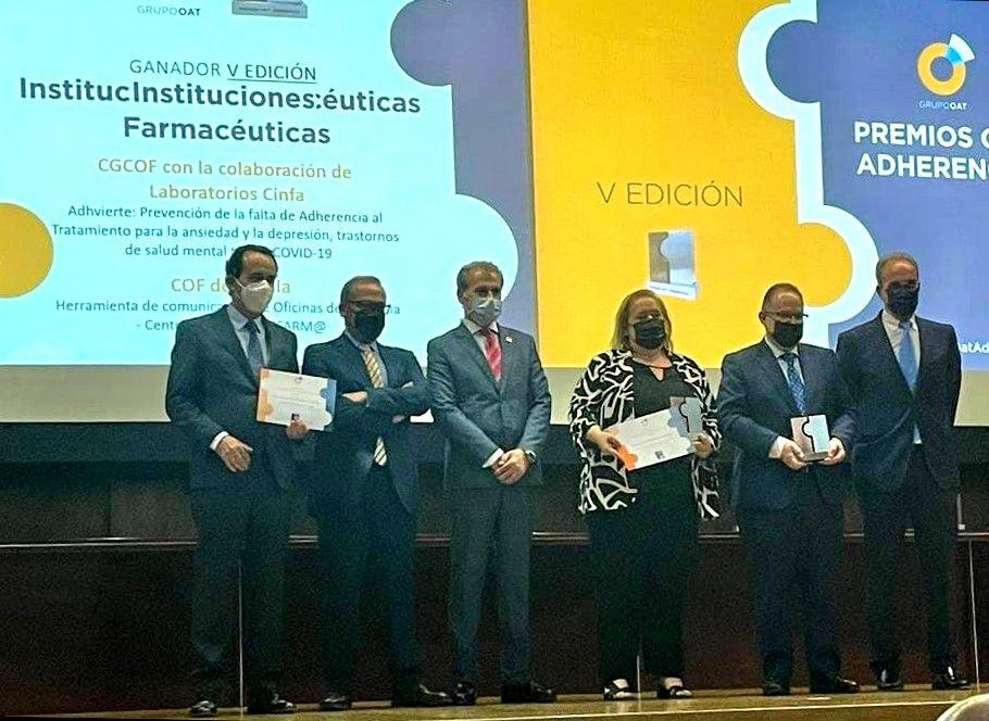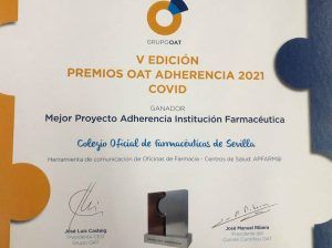 Nuestra iniciativa APFarm@ para mejorar la comunicación y coordinación entre Farmacia Comunitaria y la Atención Primaria, ha resultado ganadora del primer premio de su categoría en la quinta edición de los Premios OAT Adherencia, unos galardones destinados a reconocer y poner en valor aquellos proyectos o iniciativas llevadas a cabo en España con la finalidad de favorecer la mejora de la adherencia terapéutica.