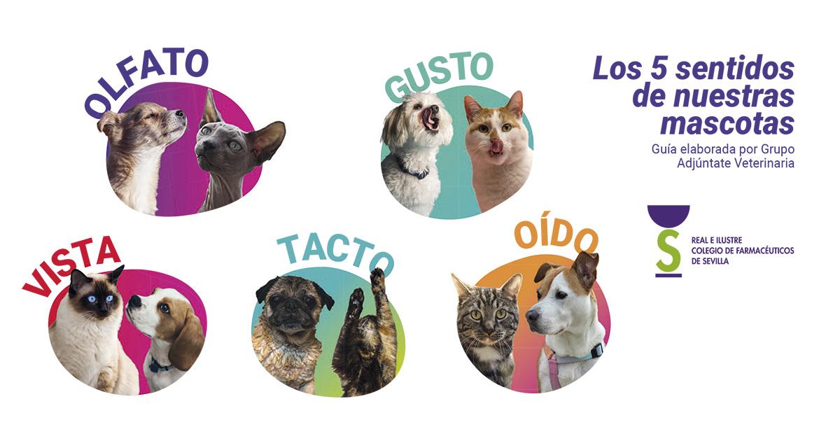 El manual, que lleva por título ‘Los 5 sentidos de nuestras mascotas’ es el resultado de un trabajo realizado por el Grupo #Adjúntate Veterinaria y que, como bien indica su nombre, divide sus contenidos en función de los cinco sentidos –gusto, oído, olfato, tacto y vista– para así facilitar el reconocimiento de trastornos o dolencias en la mascota –perros y gatos– y poder ofrecer a los propietarios de los animales consejos para prevenir o aliviar su sintomatología.