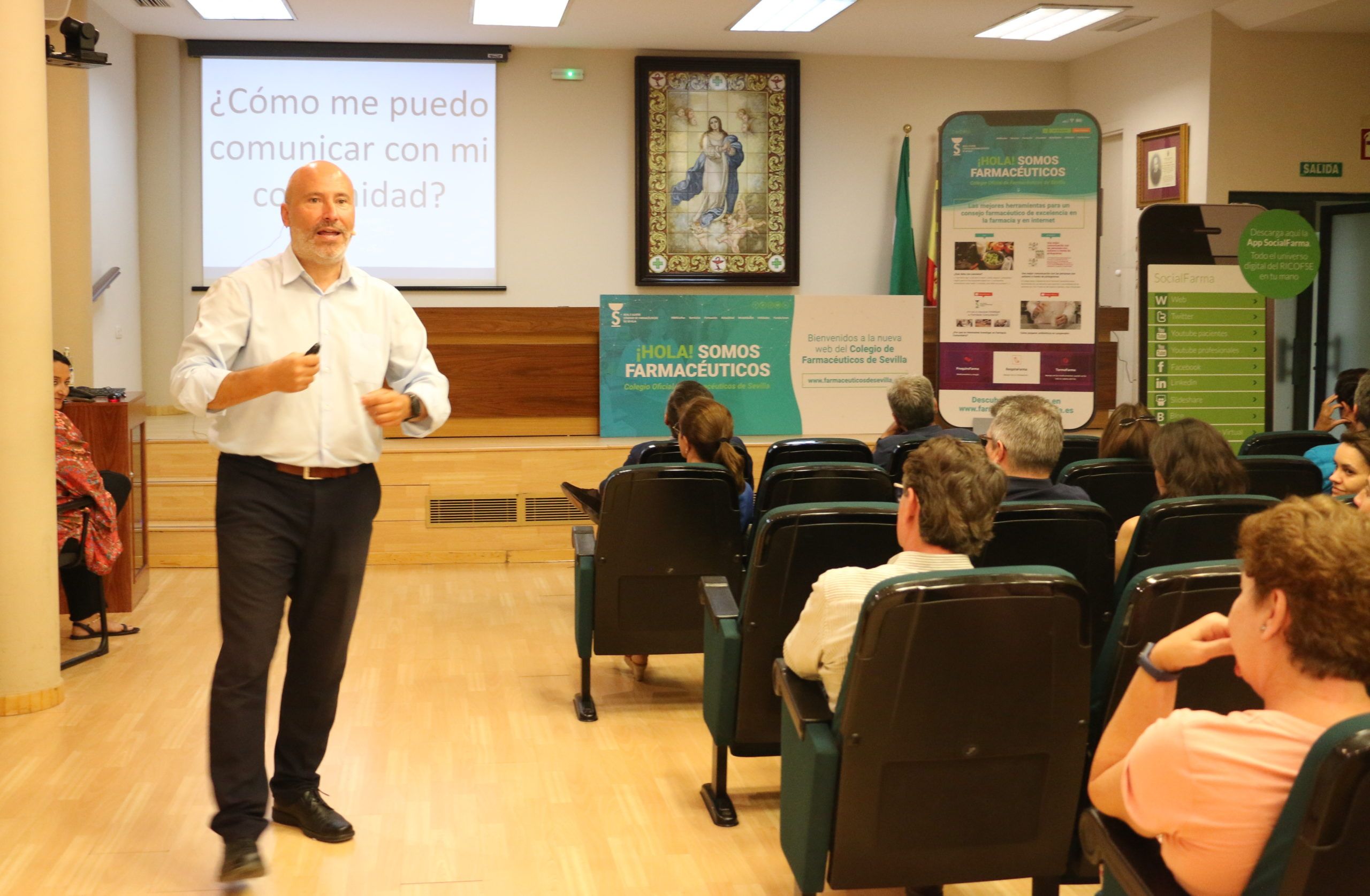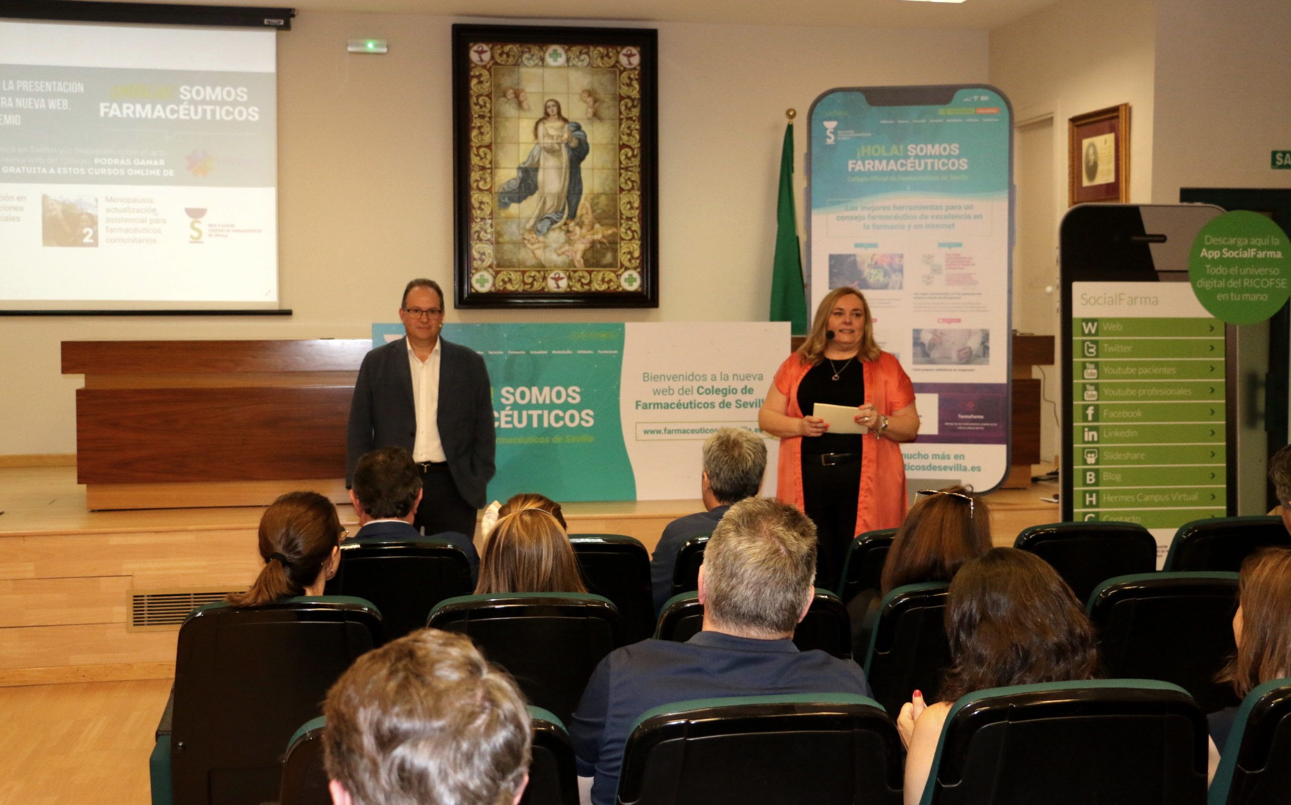 Los pormenores de esta profunda renovación estética y de funcionamiento han sido presentados por nuestro vicepresidente, Juan Pedro Vaquero, y nuestra secretaria, Mª Isabel Andrés, en un acto celebrado en la sede colegial, que ha contado asimismo con la participación destacada del periodista y comunicador José Luis Losa, con amplia experiencia en medios como ABC, El Economista, El Confidencial o Canal Sur TV y Radio, donde es contertulio habitual, y que ofreció la ponencia ‘Cómo ser SocialFarma si no sé bailar en Tik Tok‘, en la que insistió que aprovecháramos la credibilidad y la cercanía que tenemos como farmacéuticos para trasladar también un mensaje sanitario de calidad y utilidad a pacientes y usuarios a través de internet.