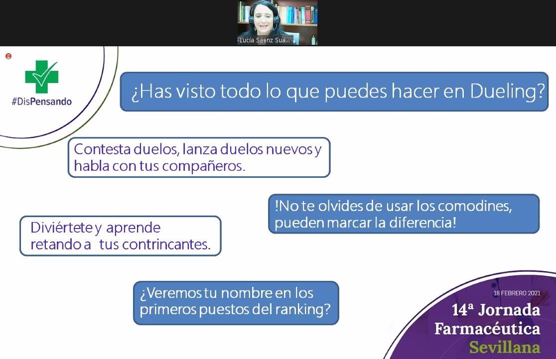 Hasta el 7 de marzo los farmacéuticos participantes en la 14ª Jornada Farmacéutica Sevillana han tenido la oportunidad de enviar duelos y retarse con otros compañeros, bien de forma aleatoria o eligiendo a los usuarios con los que queremos retarnos. Cada reto consistía en contestar preguntas sobre los temas expuestos en la jornada.