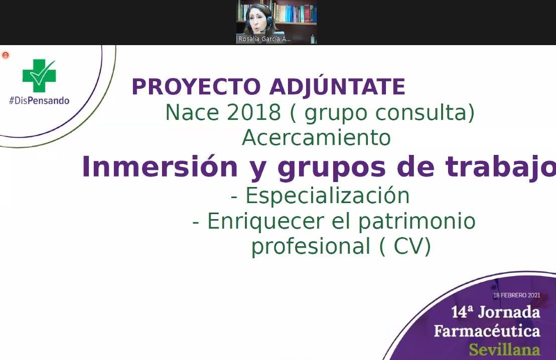 La 14ª Jornada Farmacéutica Sevillana representó el escenario idóneo para mostrar el trabajo realizado por los colegiados integrados en Adjúntate y trasladar al resto de compañeros la utilidad de esta iniciativa, así como la experiencia acumulada en temas de interés profesional, expuesta a través de diversas ponencias temáticas.