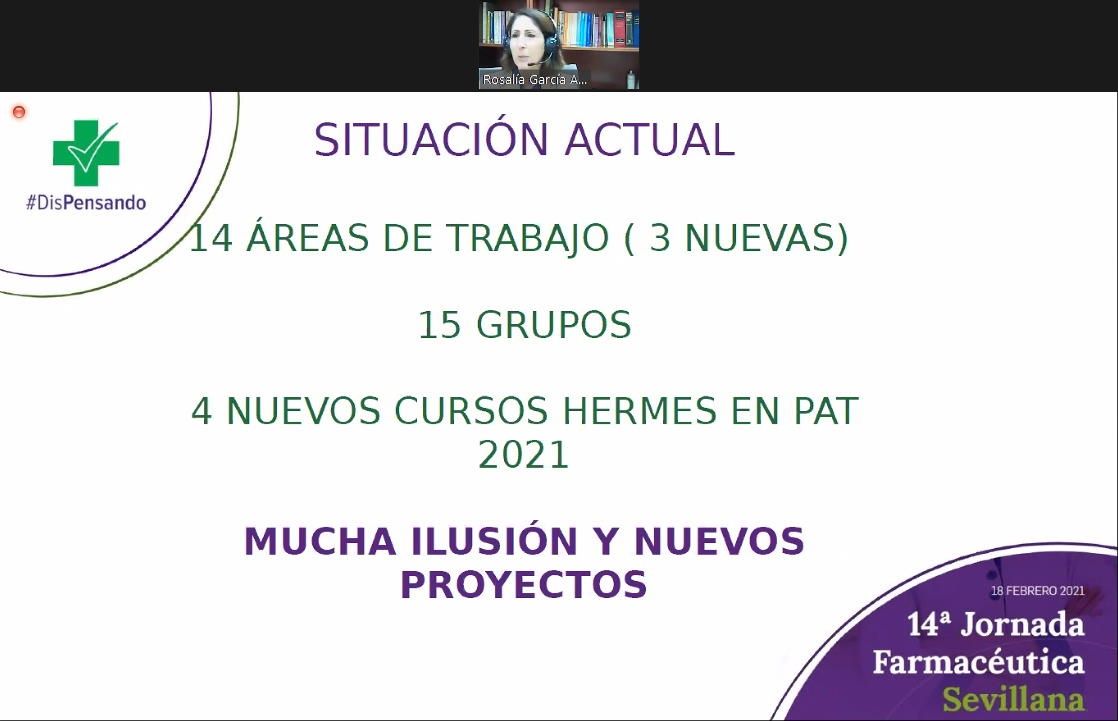 En la actualidad se está trabajando en 14 áreas y recientemente se han creado tres más, como son veterinaria, docencia e investigación y análisis clínicos, y están en marcha 15 grupos de trabajo, y cuatro nuevos cursos desarrollados por ellos. Entre esos grupos de trabajo están el de Revisión de la Medicación; Nutrición y alimentación; Vacunas y/o alergología; Fitoterapia; Dermofarmacia; Embarazo, lactancia y pediatría; Personas mayores; ortopedia y paciente dependiente; Salud Pública; Docencia e industria; Veterinaria, Paciente oncológico y Análisis Clínicos.